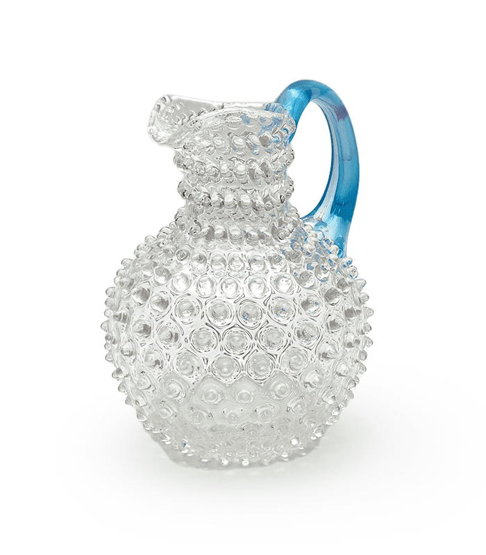 Kolekce „Ananas – Hobnail“ – optické formy se používaly již od počátku sklářství v českých zemích. Takto se sklo dekorovalo přímo ve sklářských hutích. Původní optické formy byly hliněné i kovové. Při vzestupu sklářské výroby v Čechách docházelo k postupnému zdokonalování výroby těchto optických forem, dekory byly složitější a výroba náročnější. Jedna z těchto optik, která se zachovala do současnosti je tento dekor tzv.“ananas“, který se vyráběl od roku 1880 ve sklárnách na teplicku, což dokladují historické archivy těchto skláren. Tento dekor se stal za posledních 10 let opět žádaným po celé Evropě. Díky této optice vám i v letních dnech vydrží nápoje déle chladné. Snažíme se o rozšíření sortimentu s použitím tohoto dekoru, vyrábíme i různé sklenice, vázy, mísy které se v historii téměř nevyráběly. V archivech, ze kterých čerpáme, jsme v tomto dekoru našli jen džbány.
