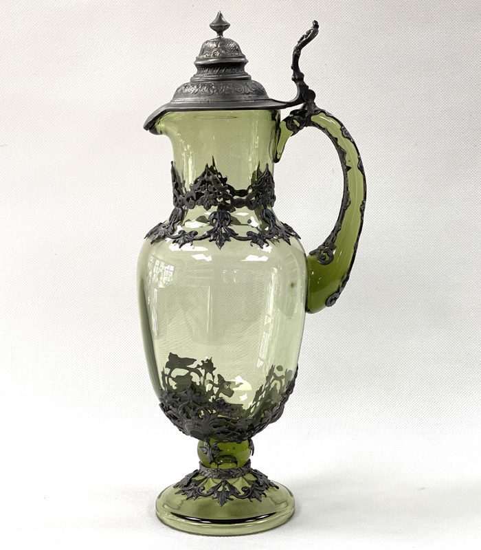 džbán je výsledkem naší sklárny a cínařské dílnysklo je tzv. lesní sklo Cínařstvíje odlévání ozdobných cínových dekoračních prvků a výrobku spojené úzkou spoluprací českých sklářů a zkušeného pasíře vyrábíme repliky cínových předmětů se kterými kombinujeme skleněné poháry a karafy, víčka na pivní půllitry a další cínové předměty a vyrábíme věrné replikypůvodních výrobků.Vše je ruční práce