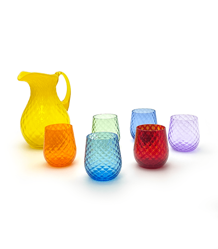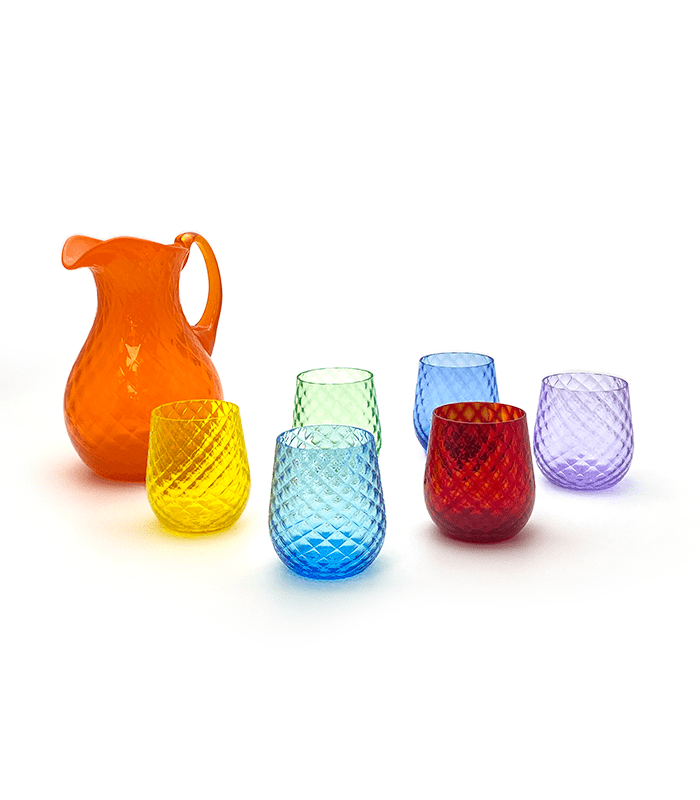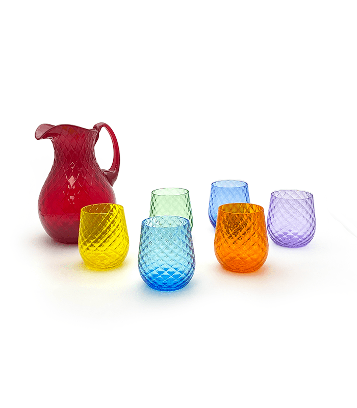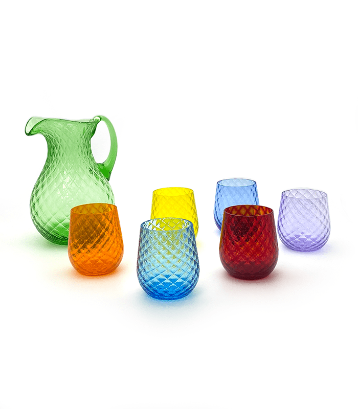 Při objednávce prosím do poznámky napiště vámi požadovanou barvu džbánu.Kolekce „Káro“ je výjimečná nejen svým vzhledem, ale i historií. Pro její tvorbu se využívají optické formy, které se používaly již od počátku sklářství v českých zemích. Ty se postupně zdokonalovaly a přizpůsobovaly stále složitějším dekorům. A jednou z optik, která se zachovala dodnes, je právě v tomto dekoru, zvaném “Káro”.Kolekce je v našem portfoliu produktů naprostou novinkou. Vyrábíme produkty od džbánů, přes různé misky a skleničky, až po petrolejové lampy. A to vše ve více než 10 barvách. Na své si tedy přijdou všichni milovníci kvalitního a originálního skla.