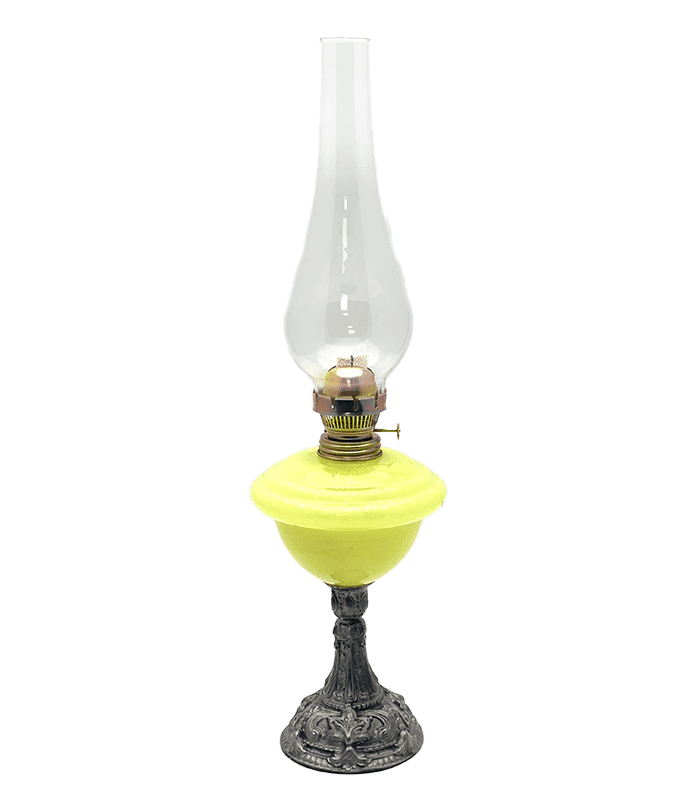 Petrolejová lampa je zdrojem světla již od dávných časů. V současnosti je určena pro romantické okamžiky a chvilky odpočinku, relaxace. Lampy plníme petrolejem nebo lampovým olejem – nejlépe čirý lampový olej. Při nalití nádržky (minimálne 2/3) neboli bazénky je nutno cca 2-3 hodiny vyčkat, aby se knot mohl dostatečně nasáknout. Knot rovně střižený zapálíme a jakmile se zahřeje hořák, zasuneme knot do hořáku. Tím docílíme jemného spojeného světla, kdy hoří olej z bazénky a knot nečoudí.II.jakost – drobné kosmetické vady skla (bublinky)