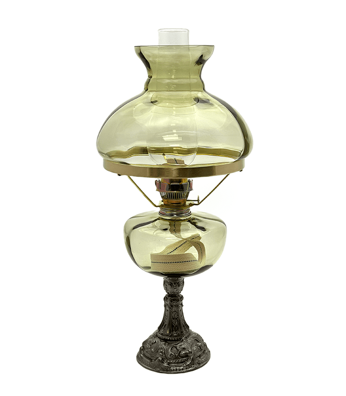 Petrolejová lampa s cínovou nohou – lesní zelená