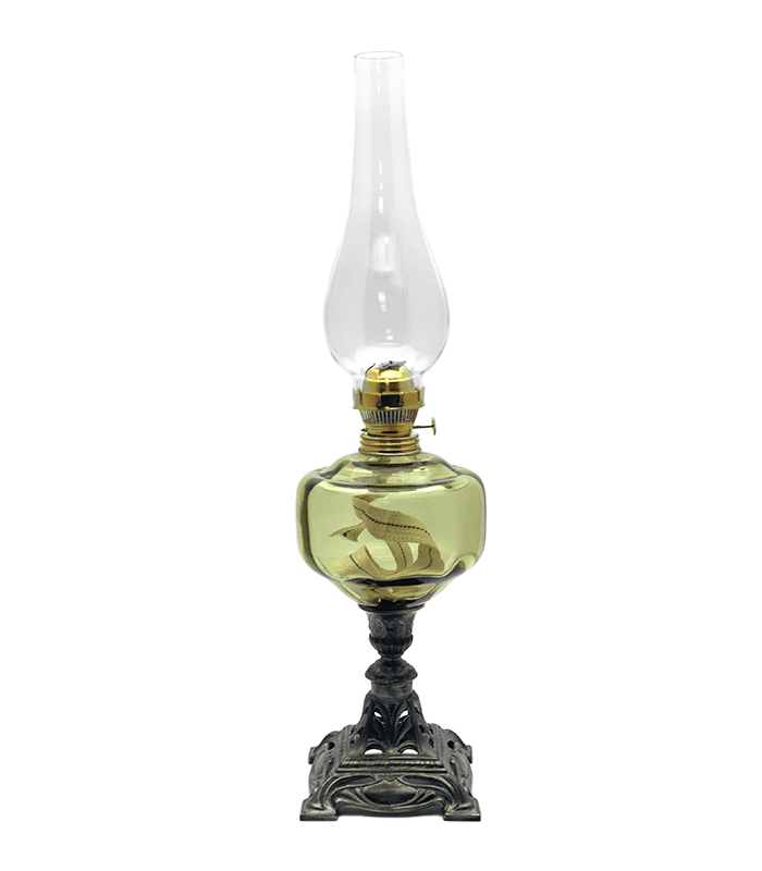 Petrolejová lampa je zdrojem světla již od dávných časů. V současnosti je určena pro romantické okamžiky a chvilky odpočinku, relaxace. Lampy plníme petrolejem nebo lampovým olejem – nejlépe čirý lampový olej. Při nalití nádržky (minimálne 2/3) neboli bazénky je nutno cca 2-3 hodiny vyčkat, aby se knot mohl dostatečně nasáknout. Knot rovně střižený zapálíme a jakmile se zahřeje hořák, zasuneme knot do hořáku. Tím docílíme jemného spojeného světla, kdy hoří olej z bazénky a knot nečoudí.II.jakost – drobné kosmetické vady skla (bublinky)