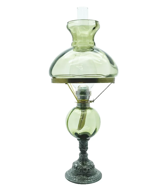 Petrolejová lampa s cínovou nohou – lesní zelená – komplet 2