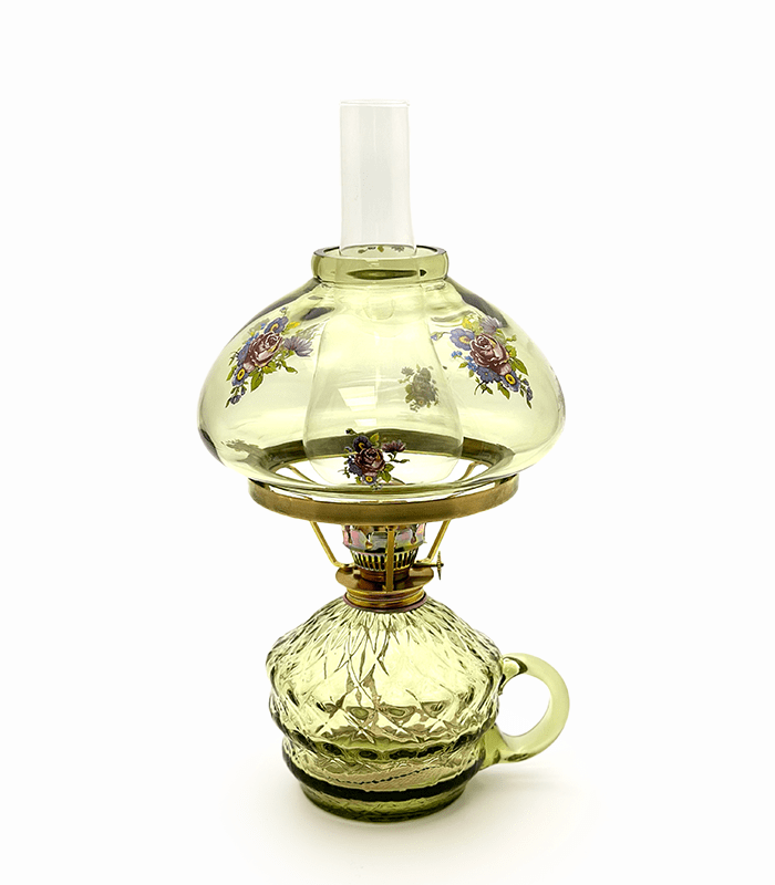 Petrolejová lampa je zdrojem světla již od dávných časů. V současnosti je určena pro romantické okamžiky a chvilky odpočinku, relaxace. Lampy plníme petrolejem nebo lampovým olejem – nejlépe čirý lampový olej. Při nalití nádržky (minimálne 2/3) neboli bazénky je nutno cca 2-3 hodiny vyčkat, aby se knot mohl dostatečně nasáknout. Knot rovně střižený zapálíme a jakmile se zahřeje hořák, zasuneme knot do hořáku. Tím docílíme jemného spojeného světla, kdy hoří olej z bazénky a knot nečoudí.Lampa je kompatibilní s petrolejovým hořákem č.1, cylindrem o průměru 38mm, držákem širmu 125mm / 160mm, širmem (stínidlem) 120mm / 155mm, plochým knotem č.1.