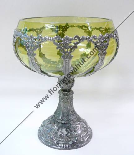Skleněná mísa s cínovou nohou a zdobením