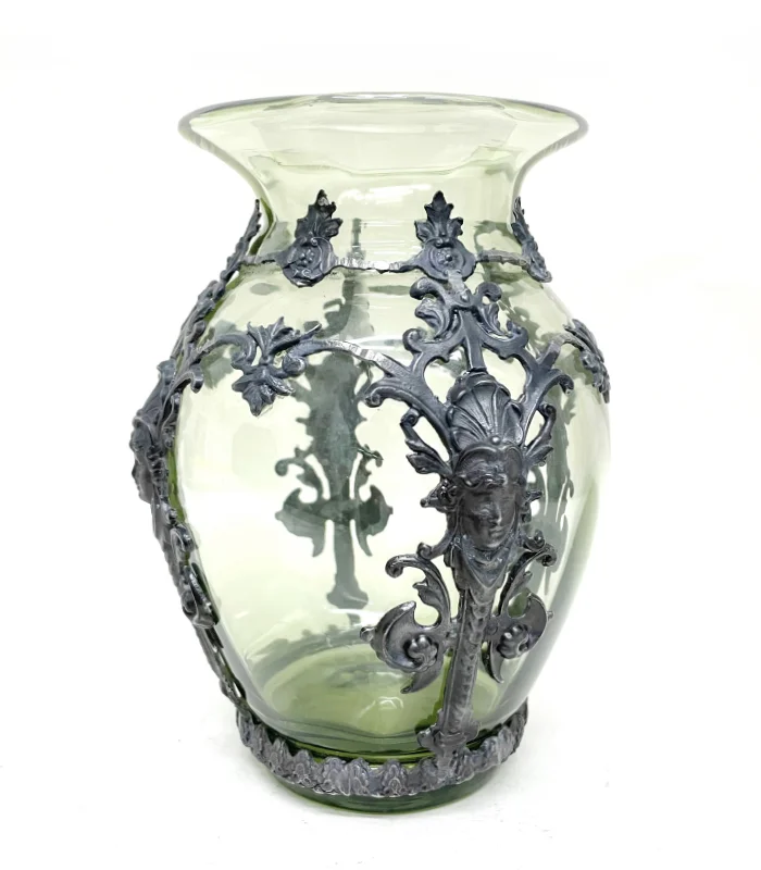 Skleněná váza 21 cm zdobená cínem – Art Nouveau