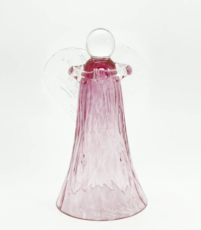 Skleněný anděl – zvonek, optická dekorace z čirého skla, která při zazvonění vydává příjemný, čistý tón.“
