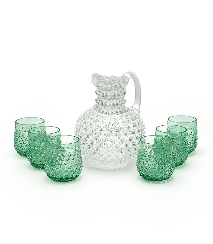 Kolekce „Ananas – Hobnail“ je výjimečná nejen svým vzhledem, ale i historií. Tento dekor se vyráběl již od roku 1880 ve sklárnách na teplicku a za posledních 10 let se stal opět žádaným po celé Evropě. Díky jedinečné technice optiky dokáže Ananas nejen zaujmout svým vzhledem,, ale také udržet nápoje v letních dnech co nejdéle chladné.Ctíme historii, zároveň se snažíme o rozšíření sortimentu s použitím tohoto dekoru. Najdete u nás nejrůznější sklenice, vázy či mísy, které se v historii téměř nevyráběly. Podle dochovaných spisů v archivech, ze kterých čerpáme, byly v minulosti běžné pouze džbány.II.jakost – kosmetické vady (bublinky ve skle, rozdílná výška a síla skla sklenic)