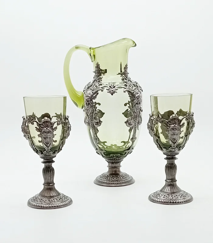 Jedná se o ručně vyrobené sklo z naší sklárny zdobené odlitky z cínu. České sklo celý svět zná jako Bohemia Glass. Jedná se o sklo sodno-draselné, které se vyznačuje velkým leskem a krásným zvukem. Produkty zdobené cínem nedoporučujeme dávat do myčky na nádobí.