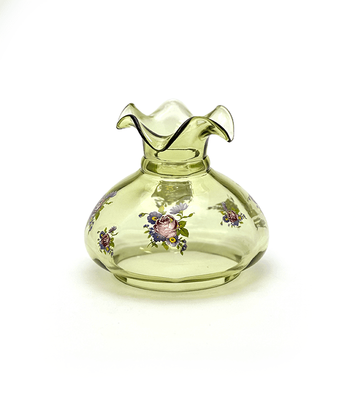 Širm – stínidlo – doplněk k petrolejovým lampám, který umí navodit krásnou atmosféru a lampu udělá zajímavější. Typická výroba českého skla – ruční práce. Uvedený rozměr stínidla je průměr spodní části, která se pasuje do držáku širmu.
