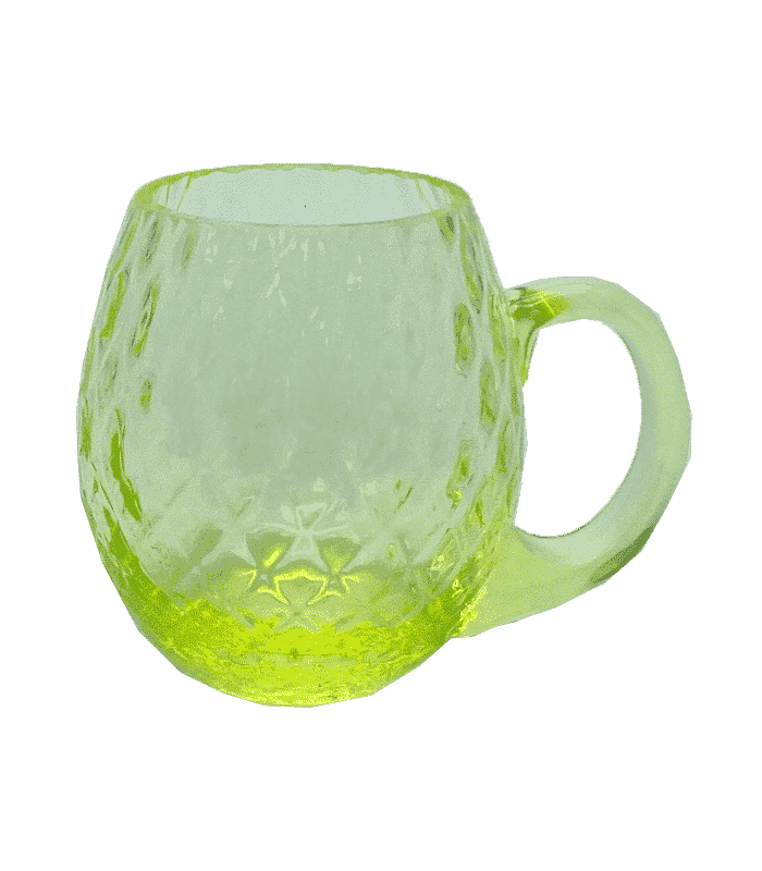 Tato barva se nazývá uranová žluť a největší zajímavostí tohoto skla je fluorescence, tzn. že pod UV světlem změní barvu a doslova magicky září.