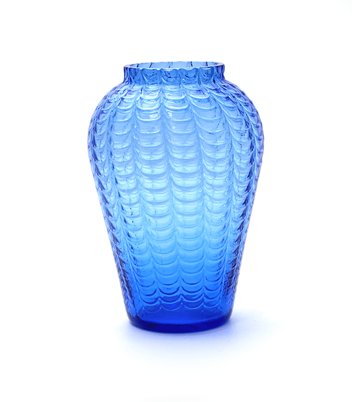 Krásný tvar vázy s optikou je další produkcí naší sklárny. Jedná se o ruční výrobu.