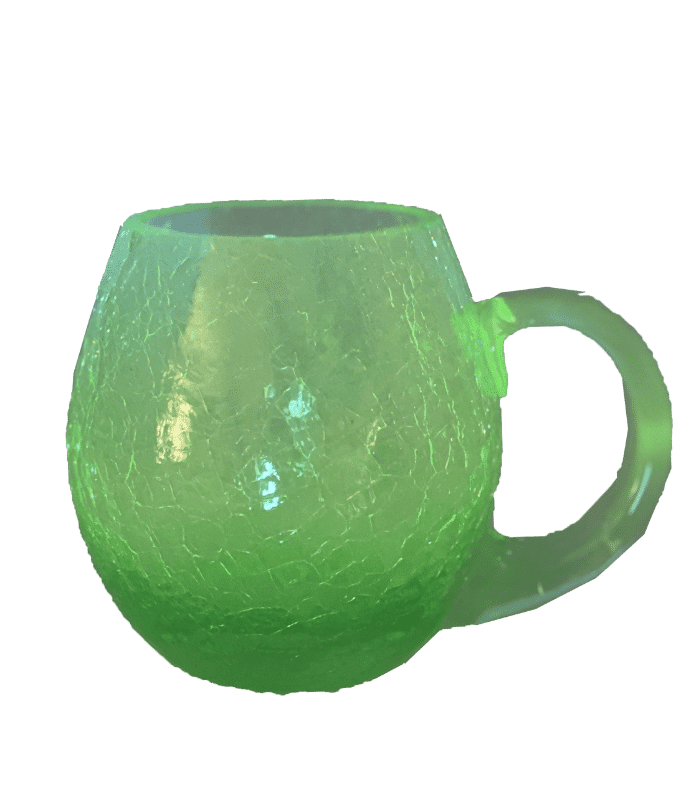 Barva se nazývá uranová zeleň a největší zajímavostí tohoto skla je, že pod UV světlem září a změní barvu.