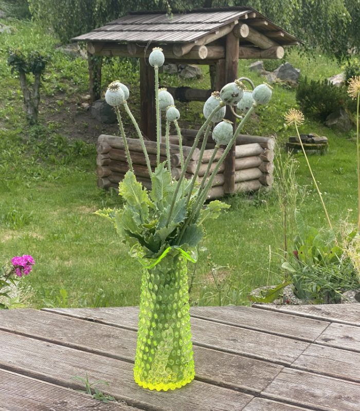 Velkou vázu lze jednoduše doplnit o malou ve stejném designu a vytvořit tak elegantní sadu. Vázy můžete použít pro aranžmá z čerstvých i sušených květin. Ať už vázu postavíte na stůl, komodu nebo okenní parapet – vynikne v každém interiéru. Nechte její křehkou krásou rozzářit i Váš domov. Vázy Hobnail to jsou jemné linie a nadčasový styl, který nepodléhá trendům.